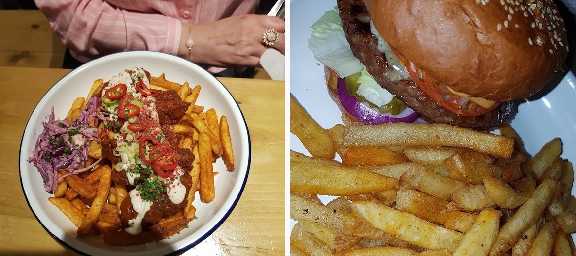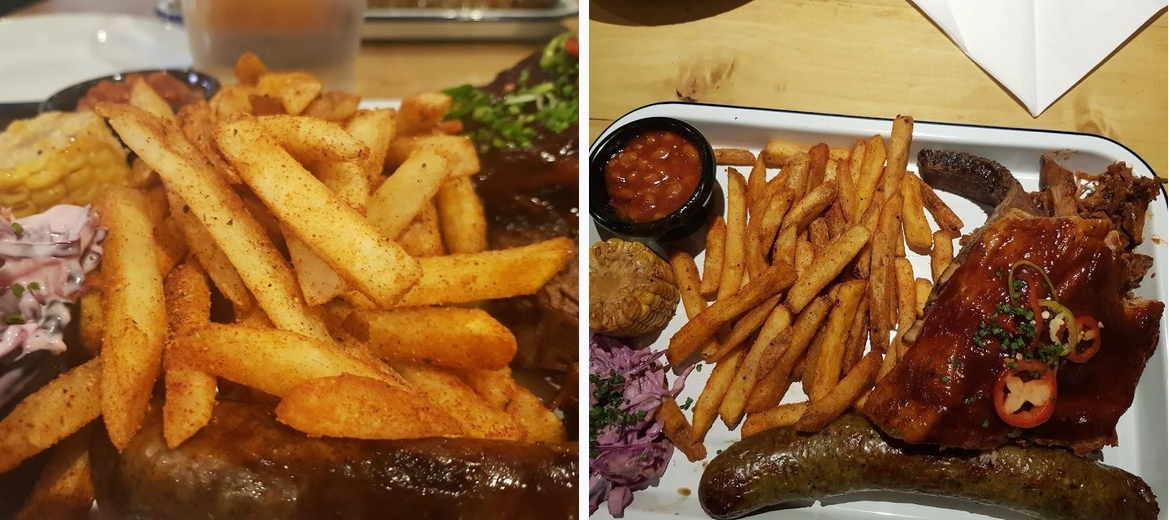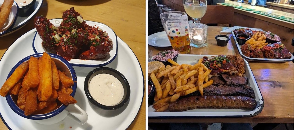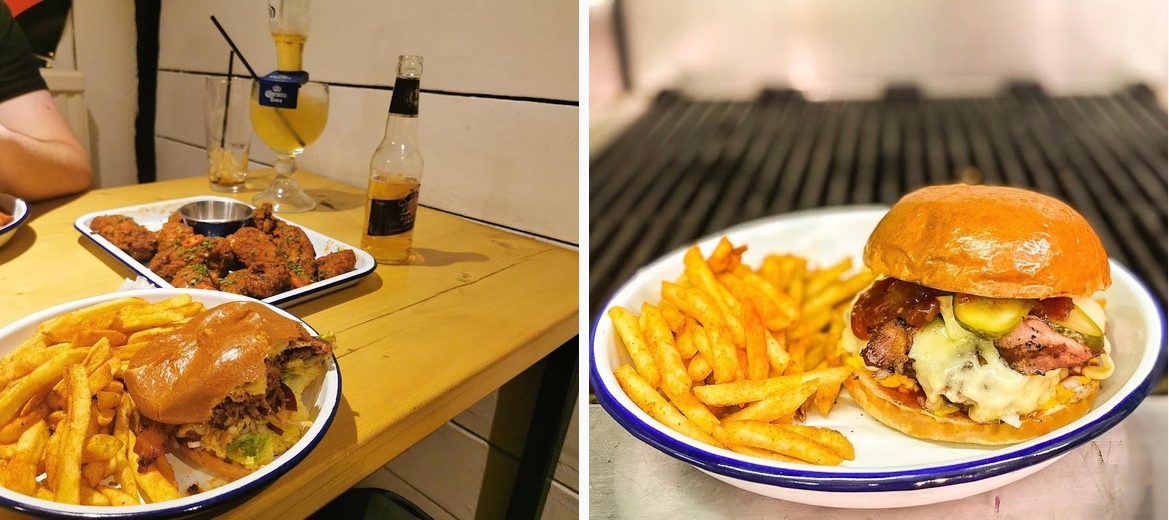 Don't miss the BBQ Tray and the sharing platter, packed with different meats and fantastic flavors. The Double Deuce Burger and the Cheese & Bacon Burger are also crowd favorites.